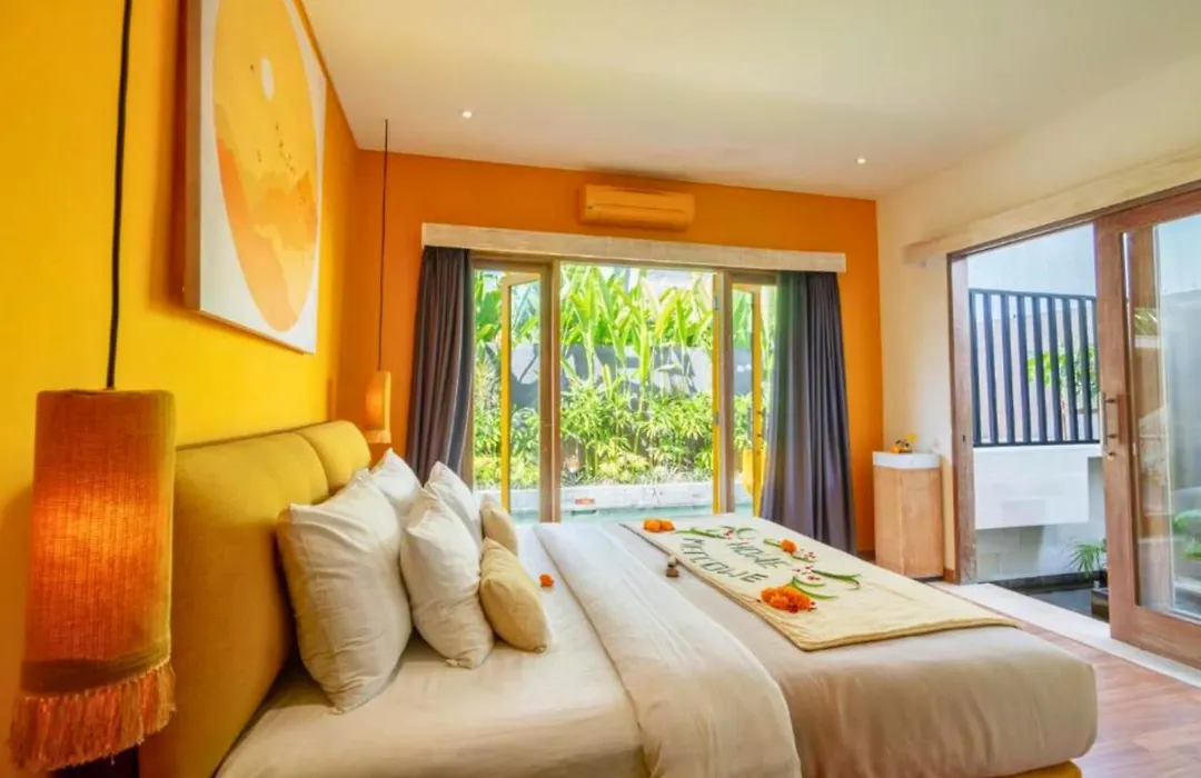 As vistas para a piscina podem ser apreciadas nesta acomodação de Kerobokan.